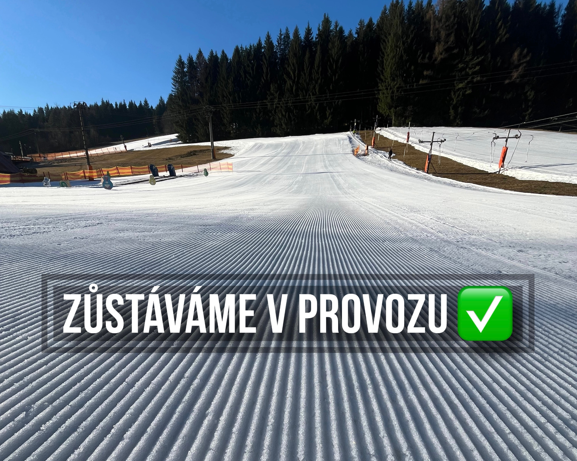Ski areálu Kyčerka zůstáváme stále v provozu: modrá sjezdovka – kotva u Hospody Kyčerka, dětský pás a malý vlek. ⚠️ Zakoupit lístky bude možné v pokladně dole na centrálním parkovišti u dětského parku. K dispozici samozřejmě lyžařská školička i půjčovna ✅